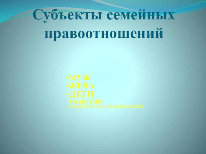 «Семейные правоотношения»Разработчик: Давыдова С.А. преподаватель права