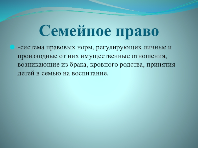 Семейное право-система правовых норм, регулирующих личные и производные от них имущественные отношения, возникающие из брака, кровного родства,