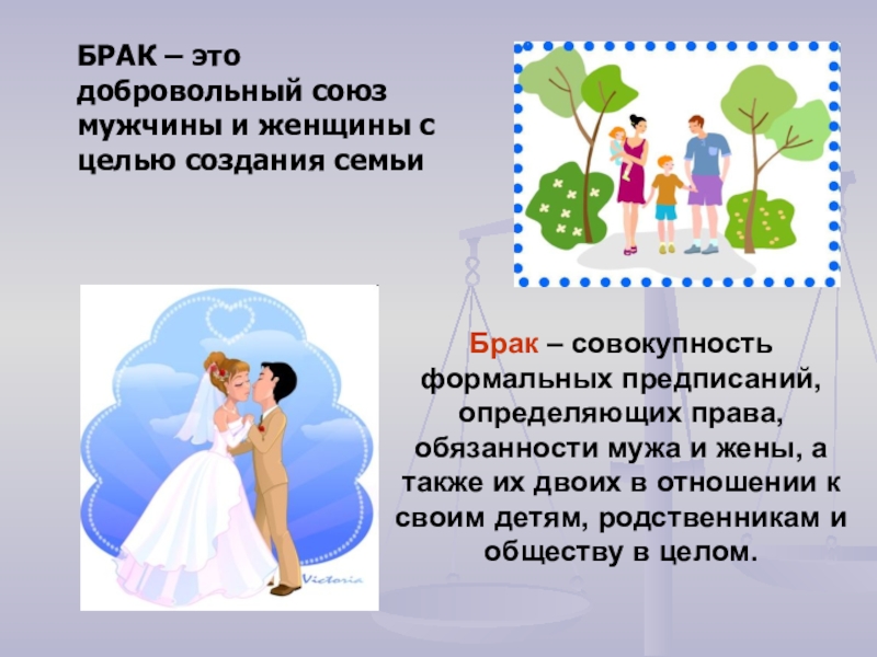 БРАК – это добровольный союз мужчины и женщины с целью создания семьи