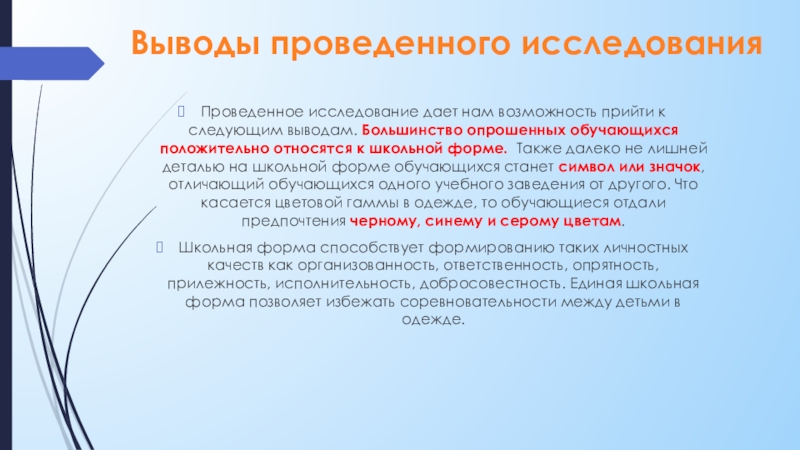 Слайд 18Проведенное исследование дает нам возможность прийти к следующим выводам. Большинство опрошенных