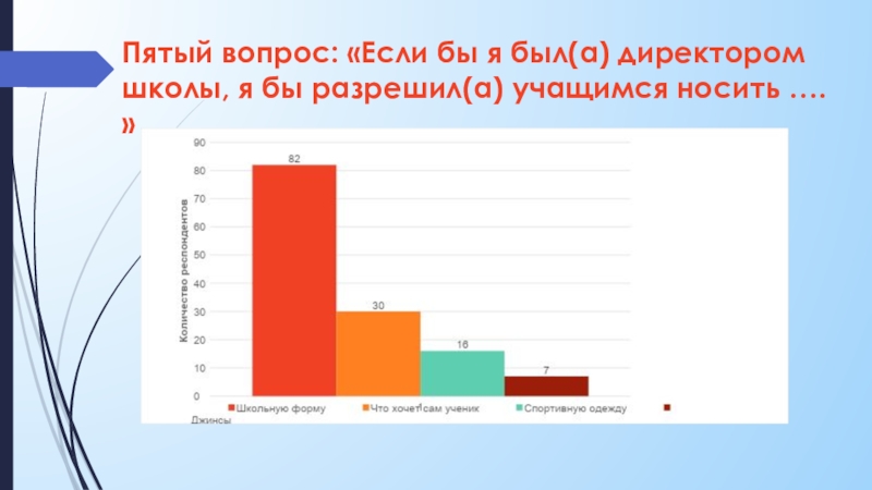Слайд 17Пятый вопрос: «Если бы я был(а) директором школы, я бы разрешил(а)