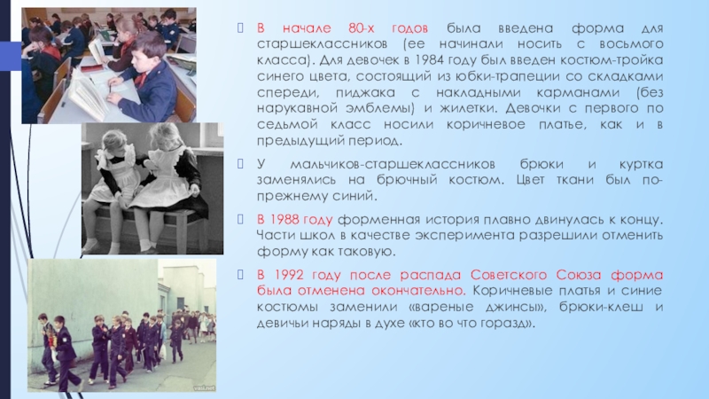 Слайд 10В начале 80-х годов была введена форма для старшеклассников (ее начинали