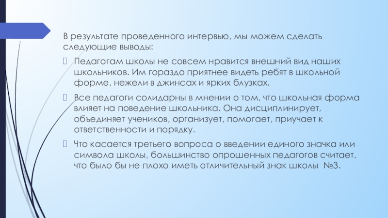 Слайд 21В результате проведенного интервью, мы можем сделать следующие выводы:
