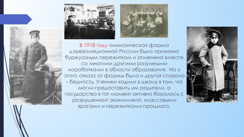 Слайд 7В 1918 году гимназическая форма дореволюционной России была признана буржуазным пережитком