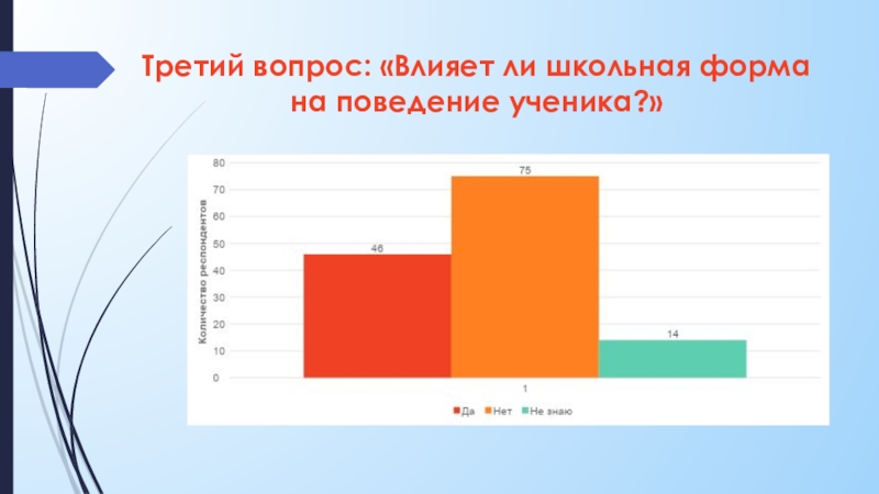 Слайд 15Третий вопрос: «Влияет ли школьная форма на поведение ученика?»