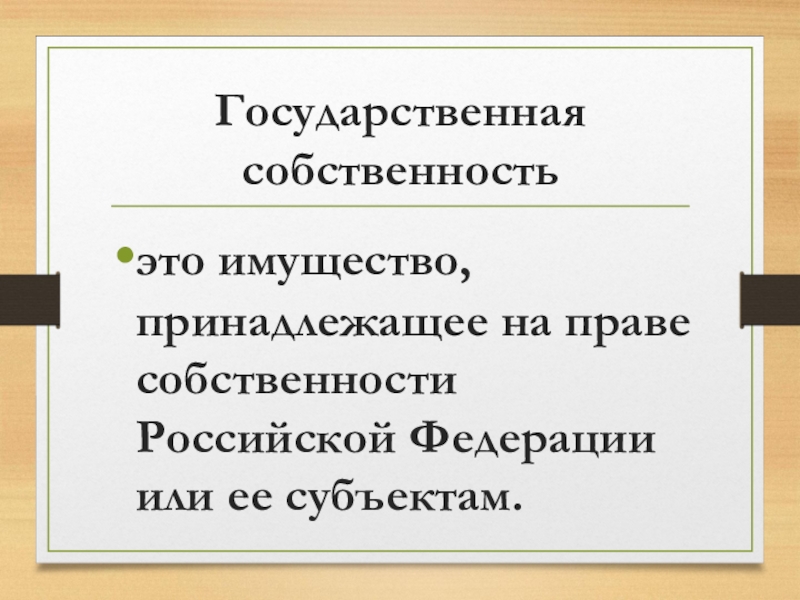 казна государства Российской Федерации, разные войска и принадлежащее вооруженным силам имущество, предприятия, республиканские средства бюджета РФ, пенсионный фонд, фонды социального страхования и другие внебюджетные, золотые запасы, валютный и алмазный фонды Российской Федерации