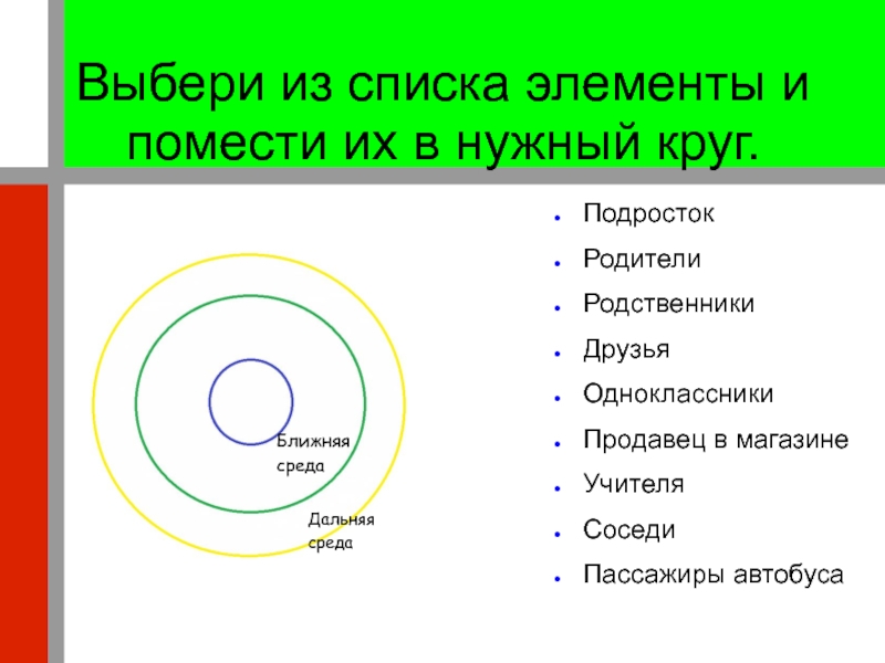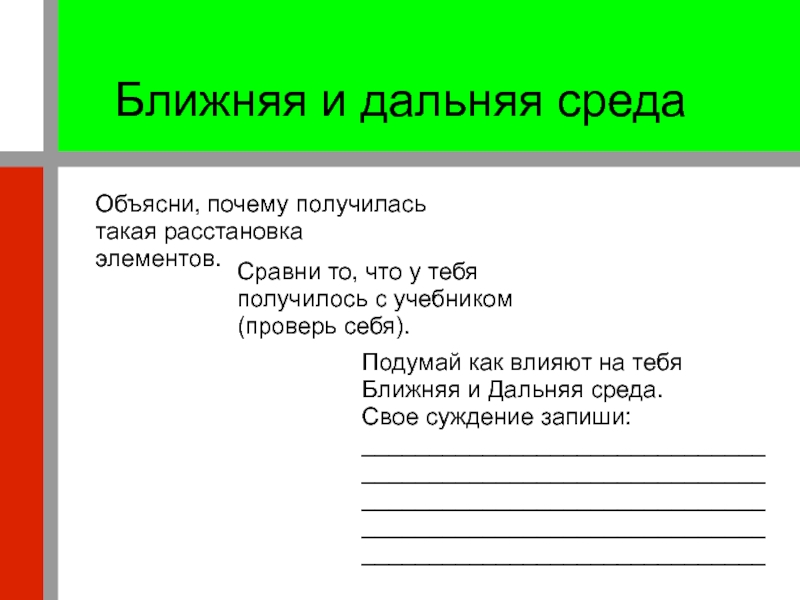 Подумай как влияют на тебя Ближняя и Дальняя среда.
