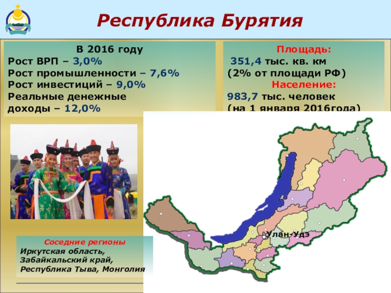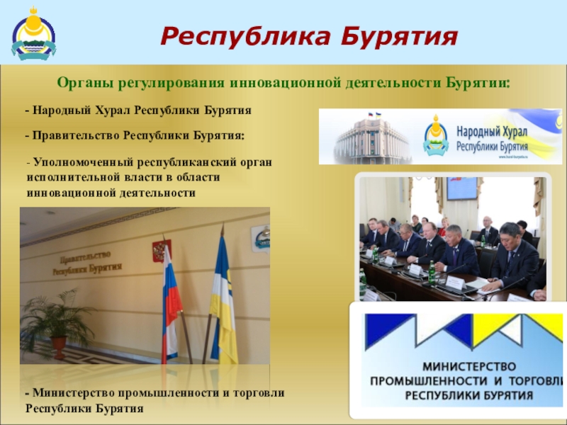 Основная задача Правительства Республики Бурятия на перспективу – создание условий для изменения структуры экономики республики в направлении развития инноваций, связанных с эколого-сберегающими и эколого-безопасными технологиями.