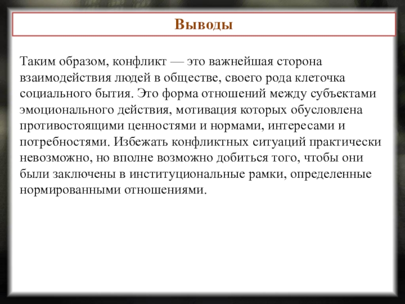 Слайд 26Таким образом, конфликт — это важнейшая сторона взаимодействия людей в обществе,