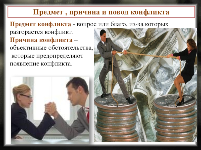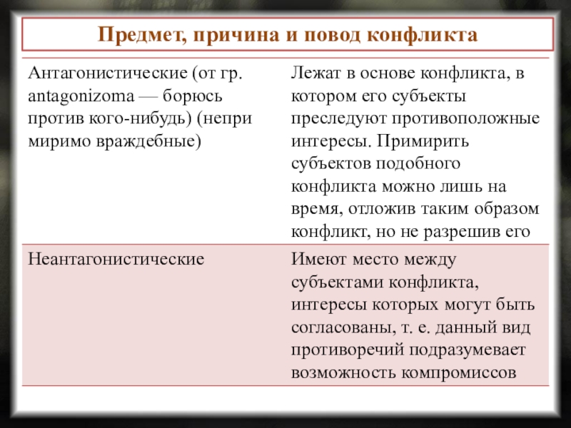 согласие невозможно. Наличие инцидента (повода), т. е. социальных действий, направленных на изменение поведения соперников. Их открытые и скрытые действия.