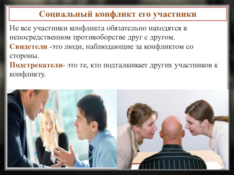 Свидетели -это люди, наблюдающие за конфликтом со стороны.