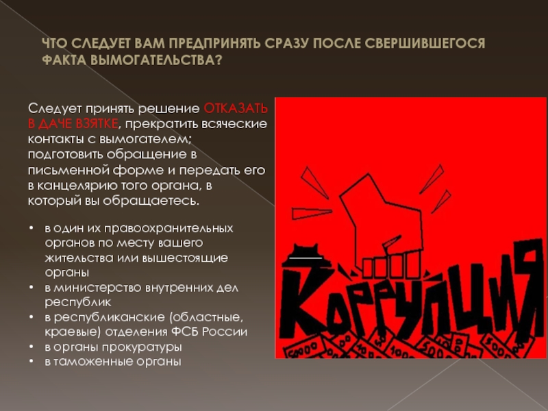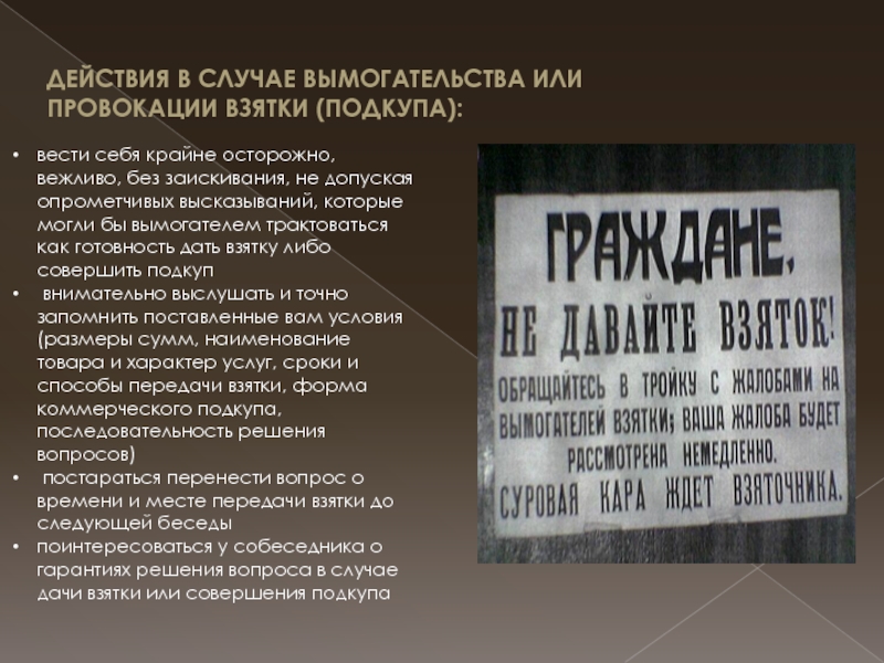 ДЕЙСТВИЯ В СЛУЧАЕ ВЫМОГАТЕЛЬСТВА ИЛИ ПРОВОКАЦИИ ВЗЯТКИ (ПОДКУПА):