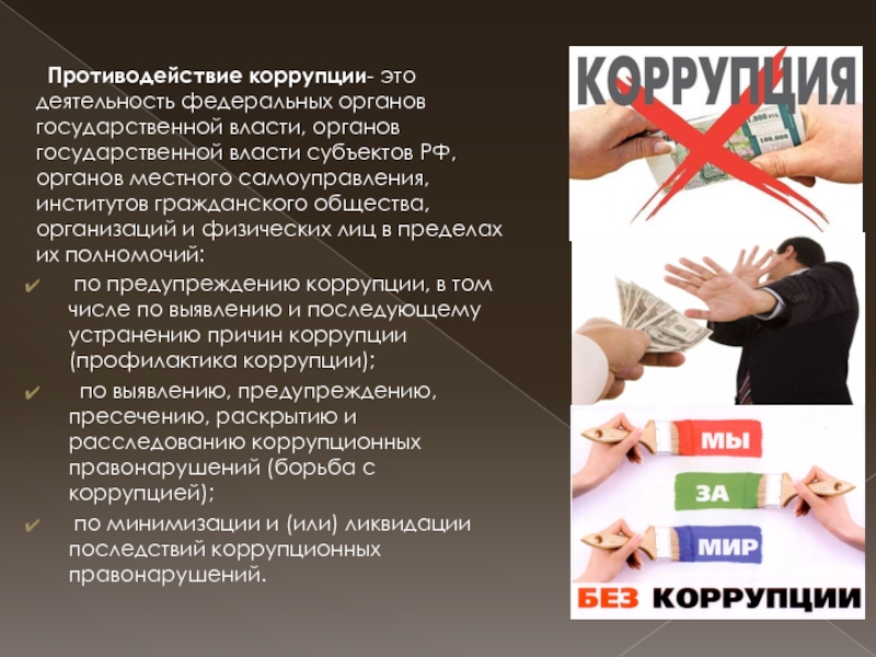 Цель : осведомить общественность о возможных способах борьбы с коррупцией