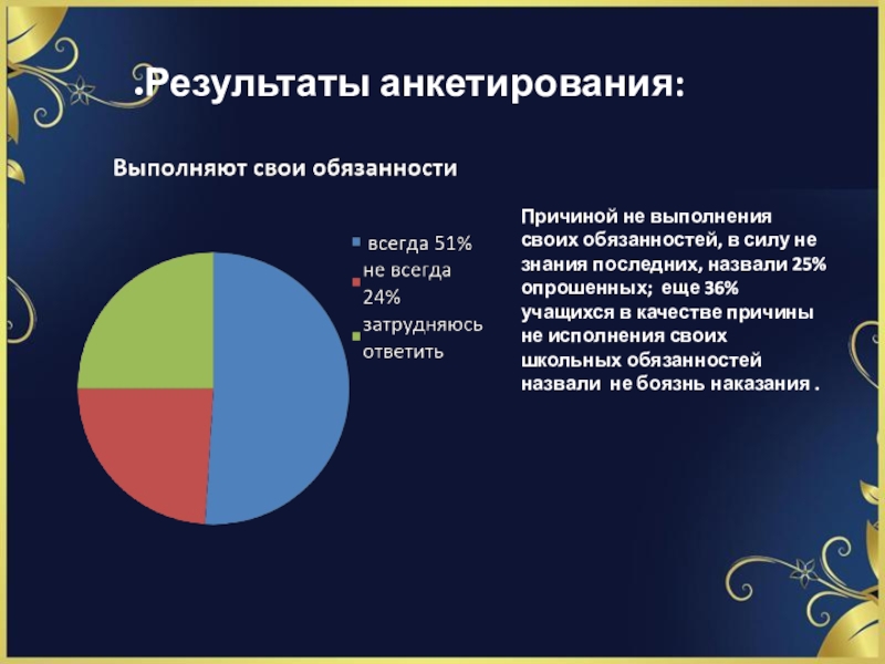назвали 25% опрошенных; еще 36% учащихся в качестве причины не исполнения своих школьных обязанностей назвали не боязнь наказания .
