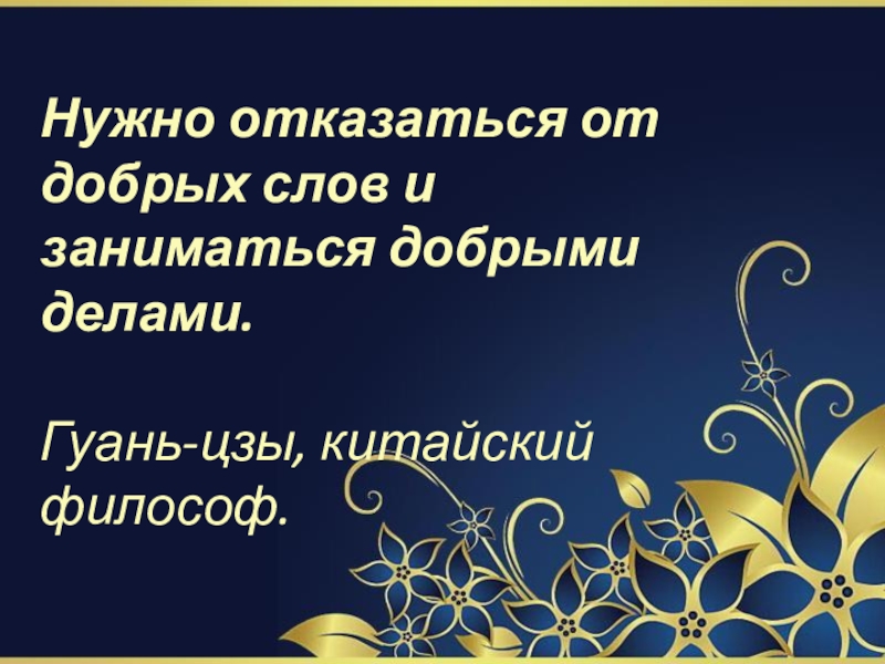 Слайд 2Нужно отказаться от добрых слов и заниматься добрыми делами.