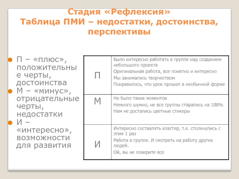 (осмысление, рождение нового знания)