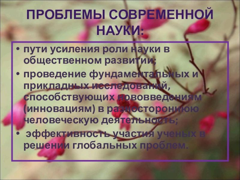 Слайд 3ПРОБЛЕМЫ СОВРЕМЕННОЙ НАУКИ: