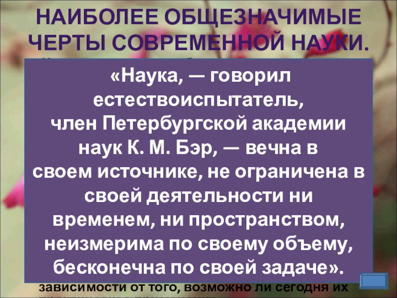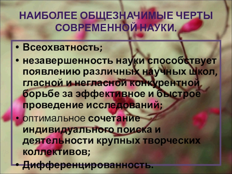 НАИБОЛЕЕ ОБЩЕЗНАЧИМЫЕ ЧЕРТЫ СОВРЕМЕННОЙ НАУКИ.