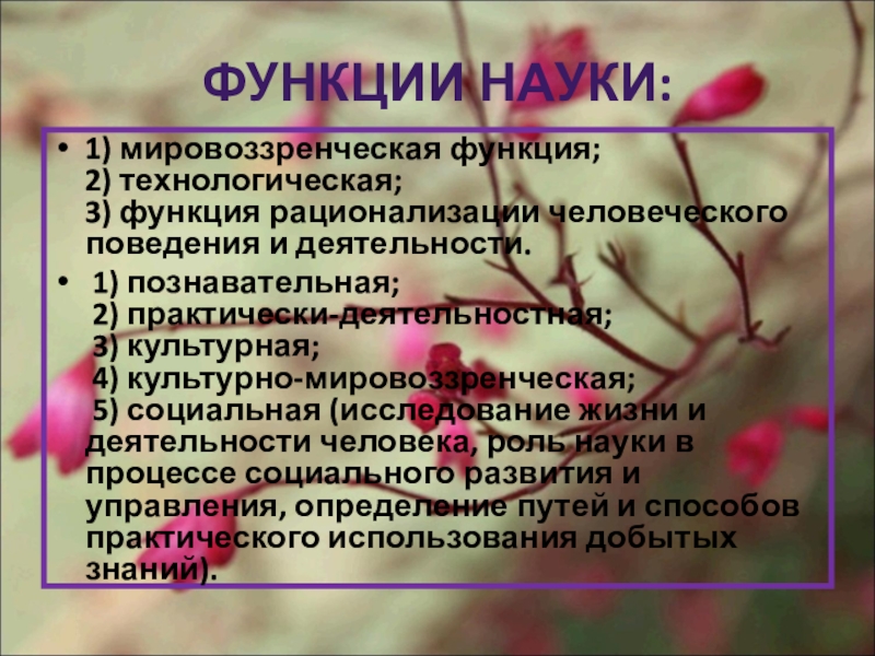 Слайд 8ФУНКЦИИ НАУКИ: