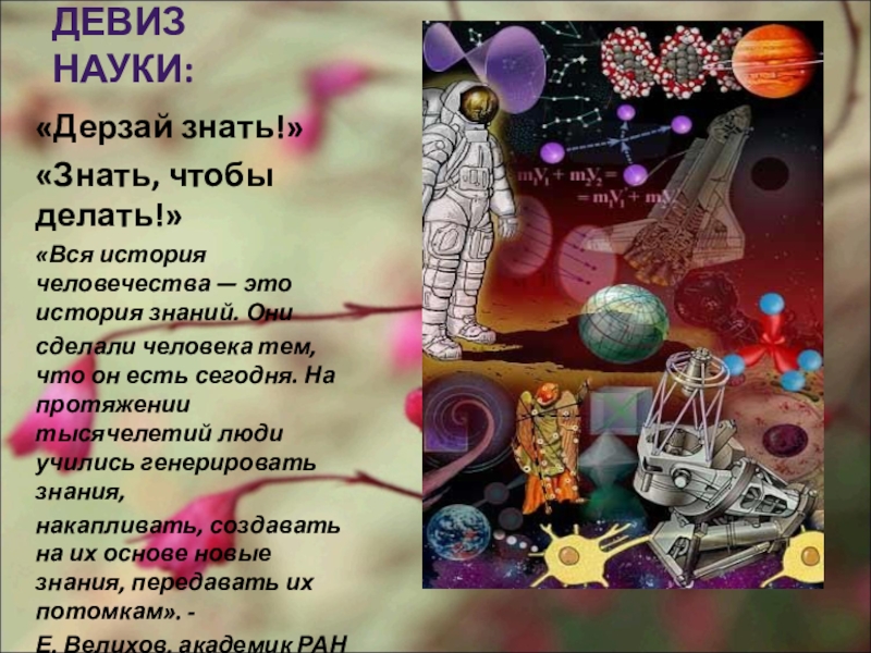 Слайд 5ДЕВИЗ НАУКИ: