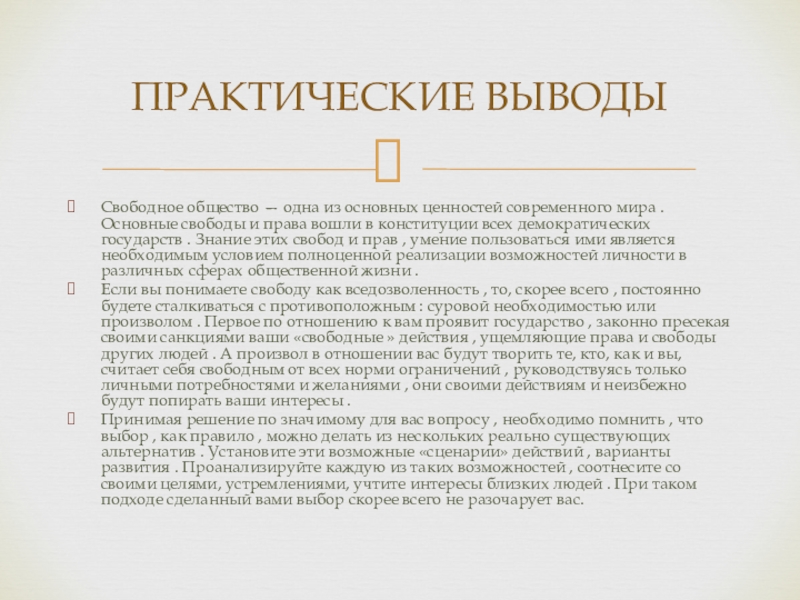 ПРАКТИЧЕСКИЕ ВЫВОДЫ