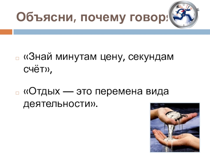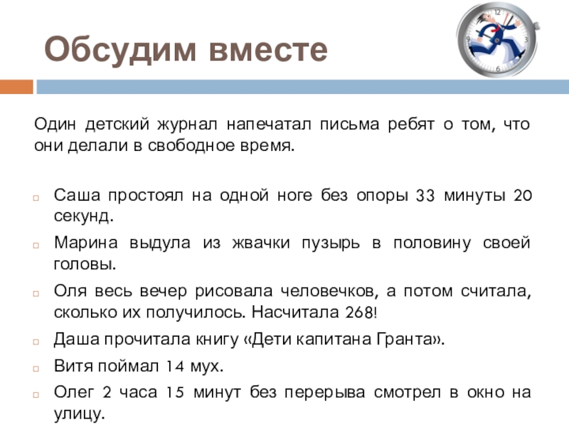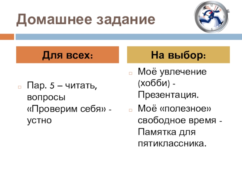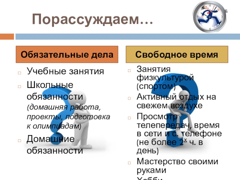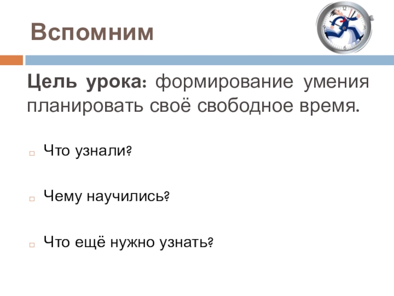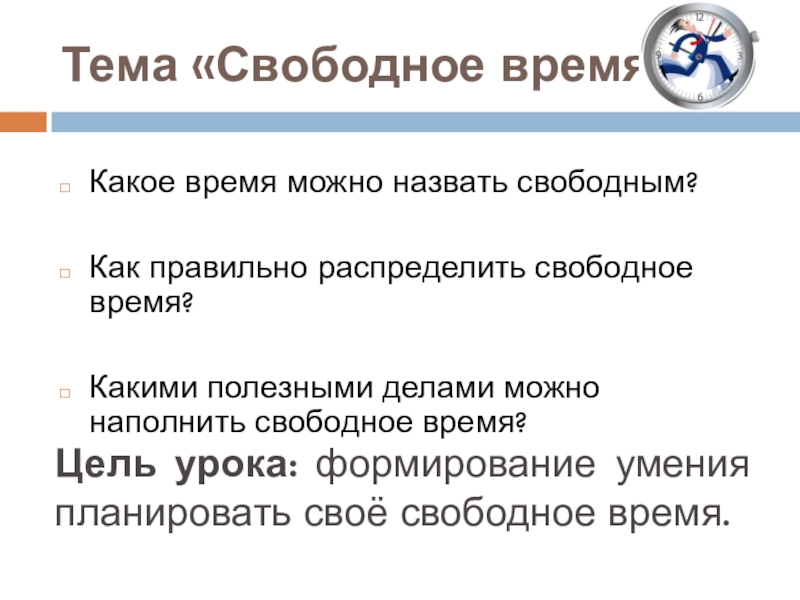 Цель урока: формирование умения планировать своё свободное время.