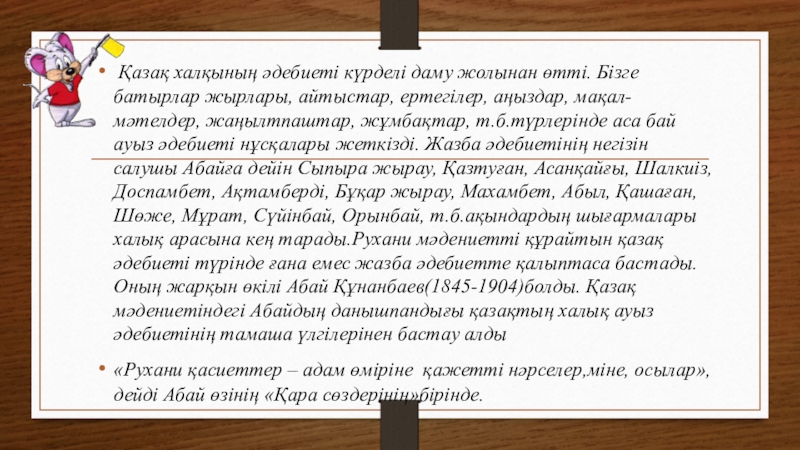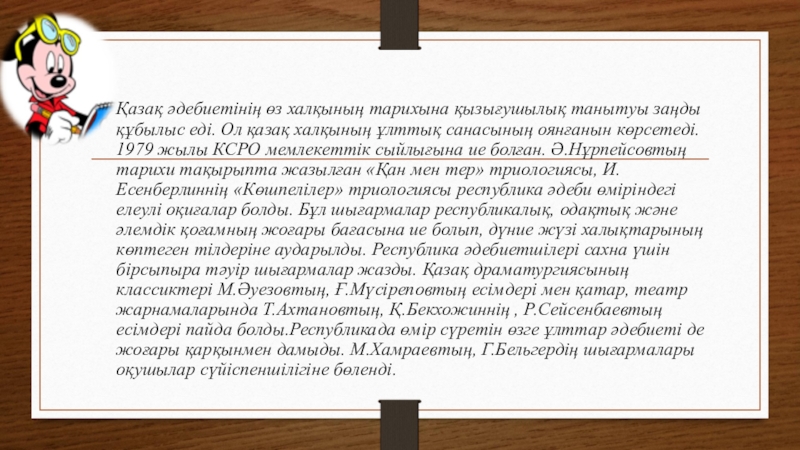 Презентация, доклад на тему Тақырып: Қазақ әдебиетінің дамуы