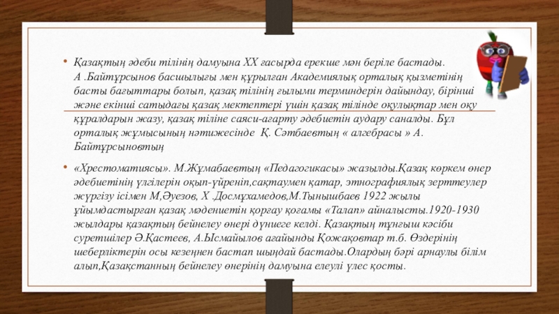 Слайд 3Қазақтың әдеби тілінің дамуына XX ғасырда ерекше мән беріле бастады.