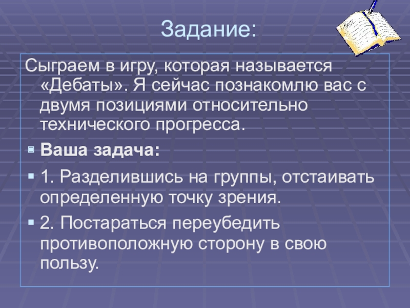 Это сайт презентаций, где можно хранить и обмениваться своими презентациями, докладами, проектами, шаблонами в формате PowerPoint с другими пользователями. Мы помогаем школьникам, студентам, учителям, преподавателям хранить и обмениваться учебными материалами.