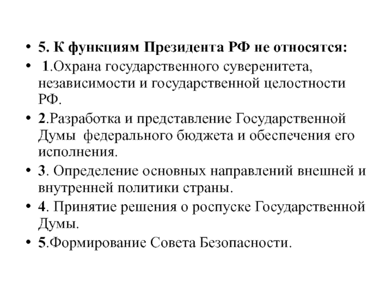 Слайд 21. К функциям Президента РФ по Конституции РФ относятся: