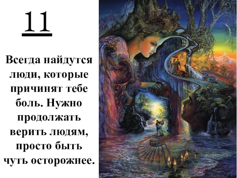 11Всегда найдутся люди, которые причинят тебе боль. Нужно продолжать верить людям, просто быть чуть осторожнее.