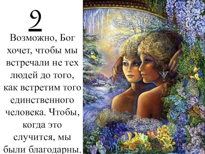 9Возможно, Бог хочет, чтобы мы встречали не тех людей до того, как встретим того единственного человека. Чтобы,