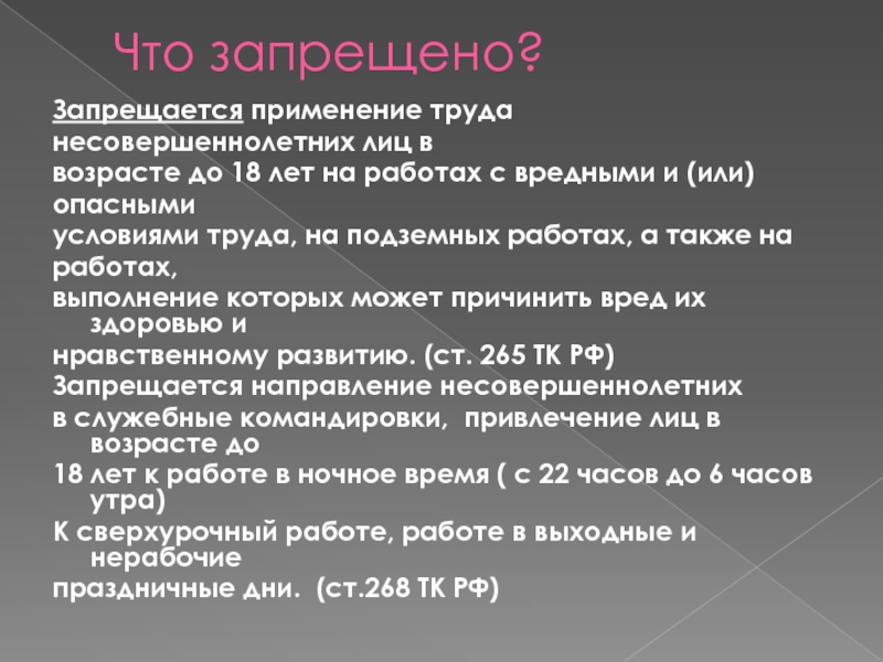 обязан заключать трудовой договор с несовершеннолетними только после предварительного обязательного медицинского осмотра (!), вплоть до исполнения 18 лет.