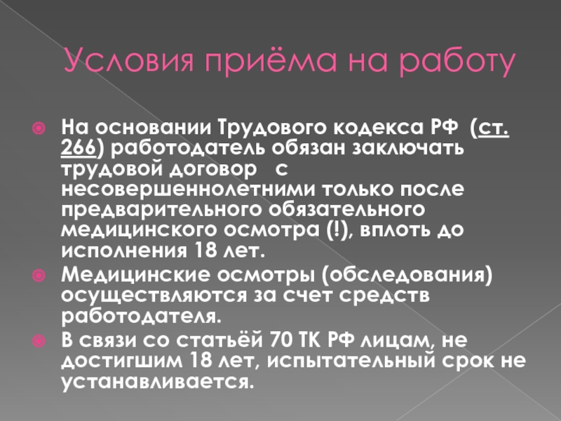 Какие требования установлены для работодателя при принятии на работу несовершеннолетнего?