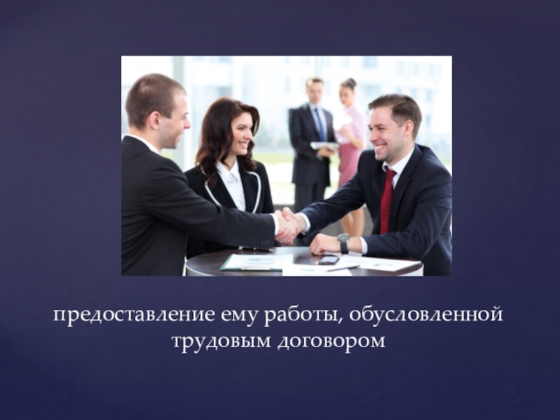 Слайд 4предоставление ему работы, обусловленной трудовым договором