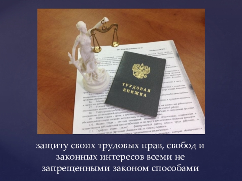 Слайд 10защиту своих трудовых прав, свобод и законных интересов всеми не запрещенными