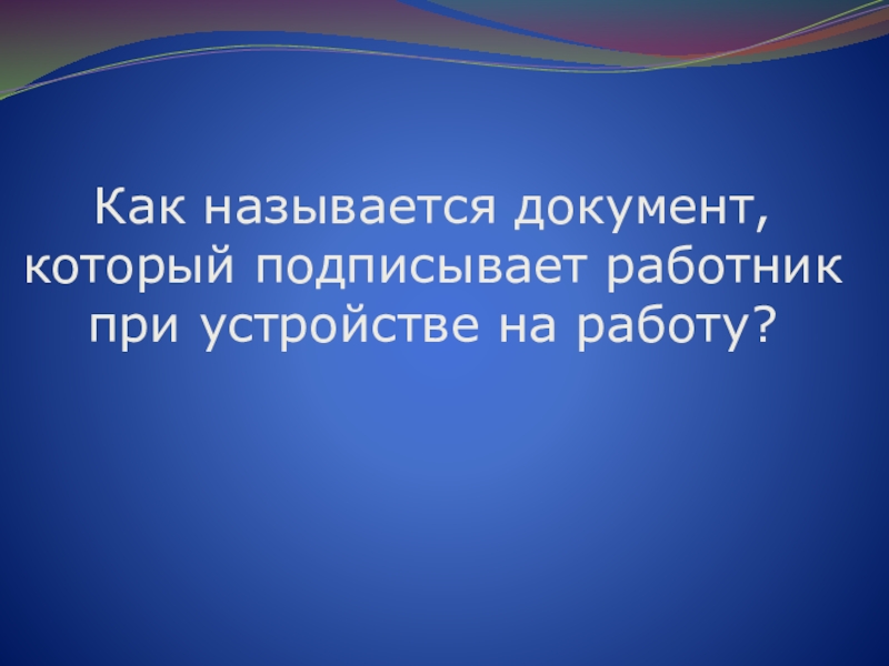 Слайд 11Как называется документ, который подписывает работник при устройстве на работу?