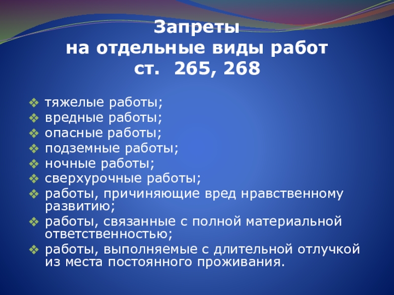 работы, причиняющие вред нравственному развитию;