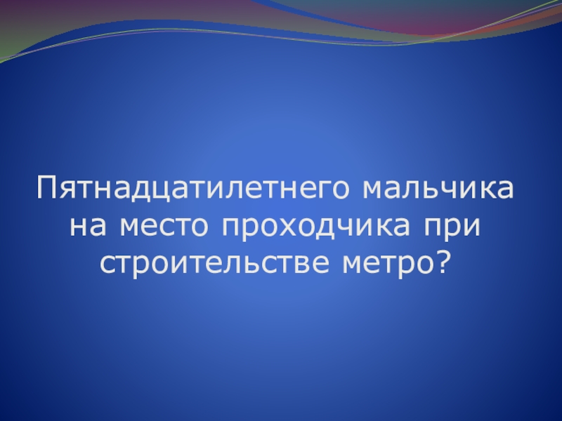Слайд 52Пятнадцатилетнего мальчика на место проходчика при строительстве метро?