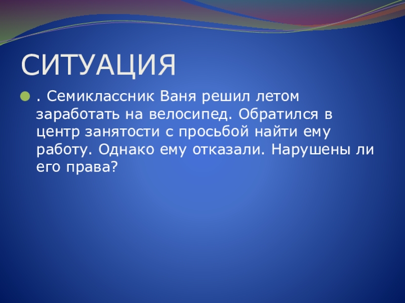 Слайд 65Несовершеннолетний Михаил обратился к администрации предприятия с заявлением о предоставлении ему