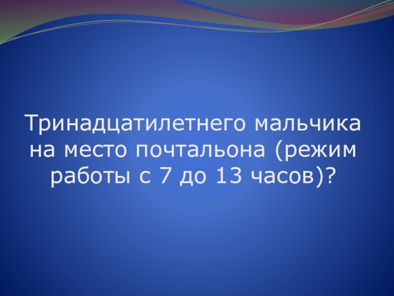 Слайд 46Тринадцатилетнего мальчика на место почтальона (режим работы с 7 до 13