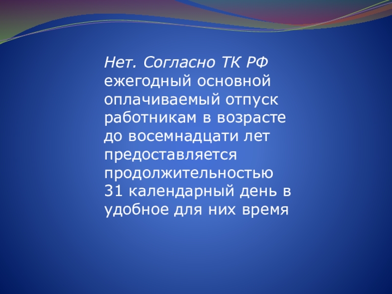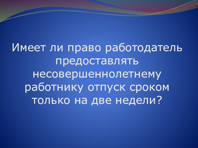 Слайд 40Имеет ли право работодатель предоставлять несовершеннолетнему работнику отпуск сроком только на