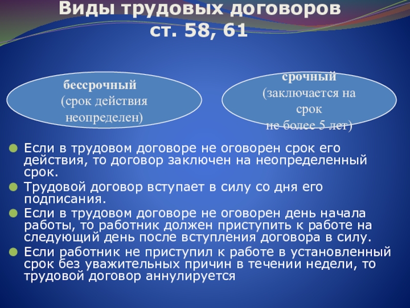 Виды трудовых договоров