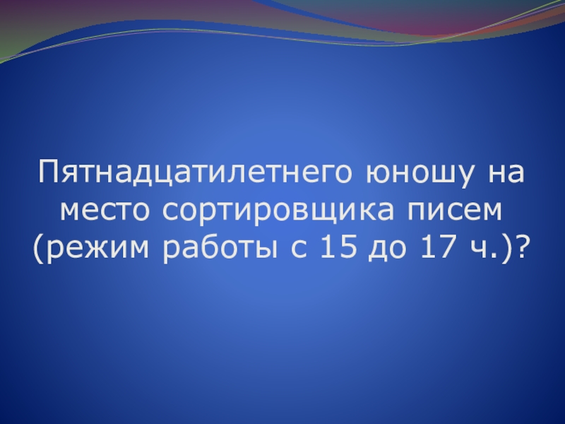 Слайд 50Пятнадцатилетнего юношу на место сортировщика писем (режим работы с 15 до
