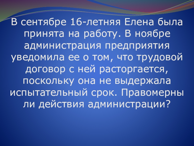 Слайд 56В сентябре 16-летняя Елена была принята на работу. В ноябре администрация