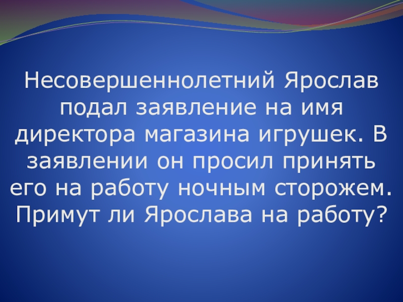 Слайд 63Несовершеннолетний Ярослав подал заявление на имя директора магазина игрушек. В заявлении