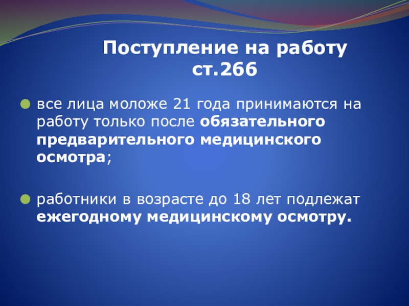 все лица моложе 21 года принимаются на работу только