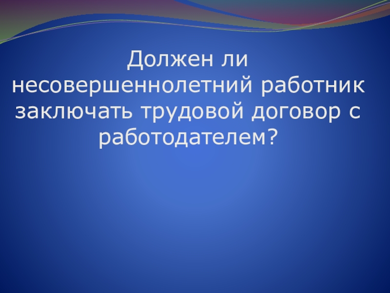 Слайд 36Должен ли несовершеннолетний работник заключать трудовой договор с работодателем?