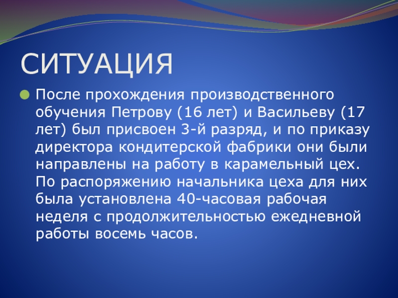 После прохождения производственного обучения Петрову (16 лет) и Васильеву (17 лет)
