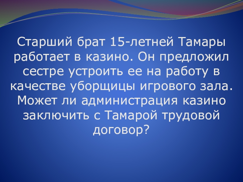 Слайд 58Старший брат 15-летней Тамары работает в казино. Он предложил сестре устроить
